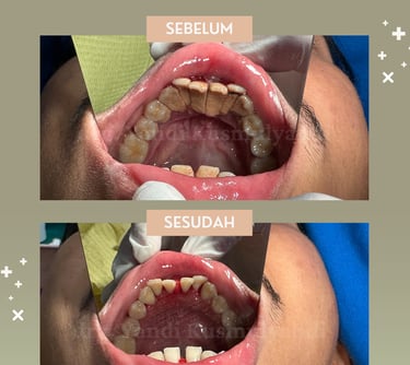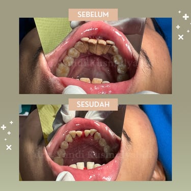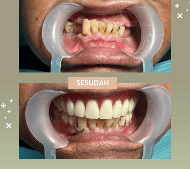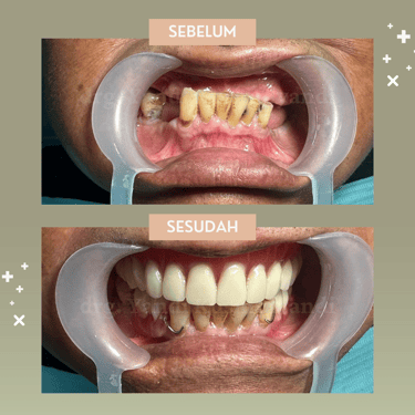 Lihat perubahan nyata dari berbagai kasus perawatan gigi yang ditangani oleh drg. Yandy Ky, mulai dari scaling, tambal gigi, cabut gigi, pemutihan gigi, hingga pemasangan gigi tiruan cekat dan lepasan.